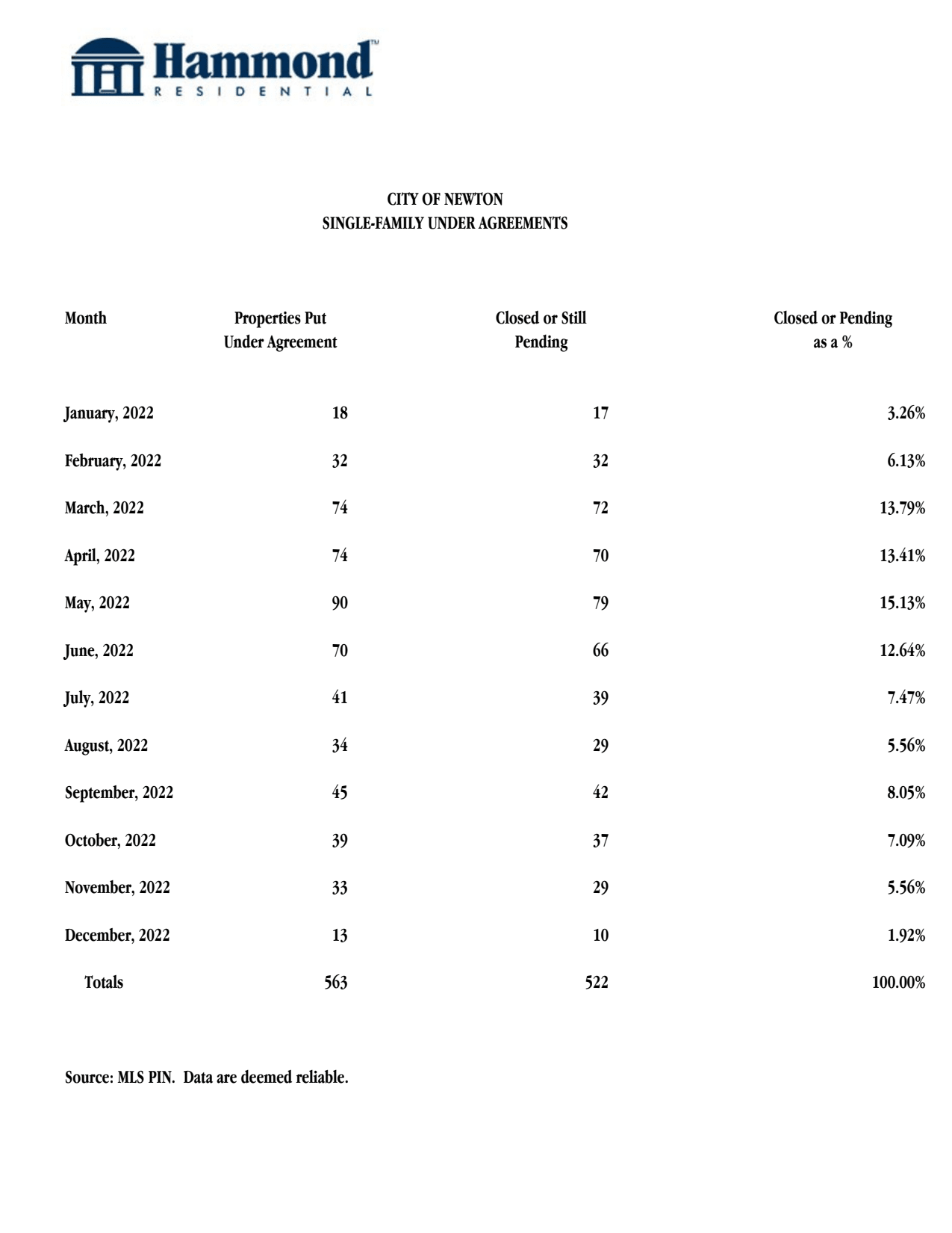 When Properties Sell -- Newton Singles --2022